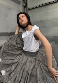 У многих из нас есть установка: красивые вещи можно носить только по особым, важным поводам. Коллекция Марии вдохновлена тоской по непрожитой и отложенной жизни, где вещи пылятся в кофре до лучших дней. Силуэты одежды повторяют граненые стаканы и тот самый «запретный» сервиз, будто говоря: «отпускать — это нормально, ждать лучшего — значит терять».