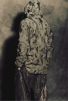 Коллекция Алима — это прочтение самой предметности модного сырья как истории, которая одновременно раскрывается в причинах и следствиях утрат. В объектах дизайнер мемориализует экологические потери, на которые мы идем, чтобы добыть материалы для производства. Куртка из коллекции почти буквально воспроизводит растительный ландшафт тундры — текстуру, цвет и динамику того, что должно быть нетронутым, но может быть надетым.