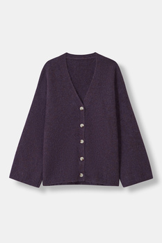 Всем, кому по душе эстетика loud luxury и boom boom era — то есть показная, выкрученная на максимум роскошь, — советуем носить сумку-мешок с шубой похожего цвета и платьями в пол. Массивные украшения тоже будут кстати. Или уйти от полностью черного комплекта — добавить кардиган из альпаки и кожаную юбку в актуальном фиолетовом оттенке.
