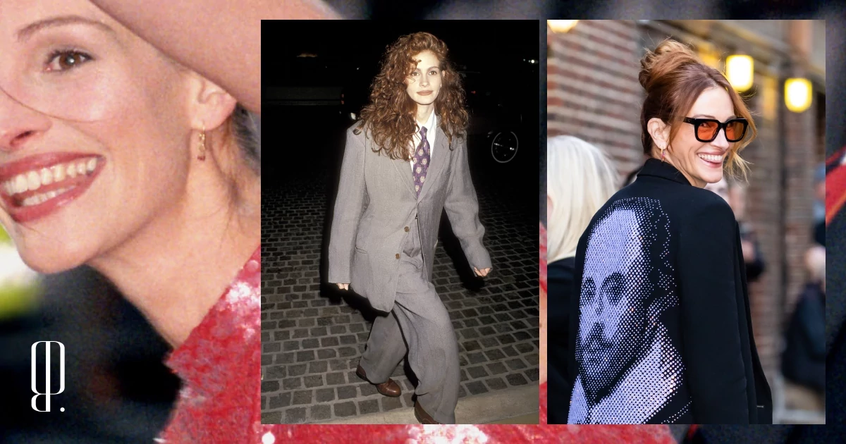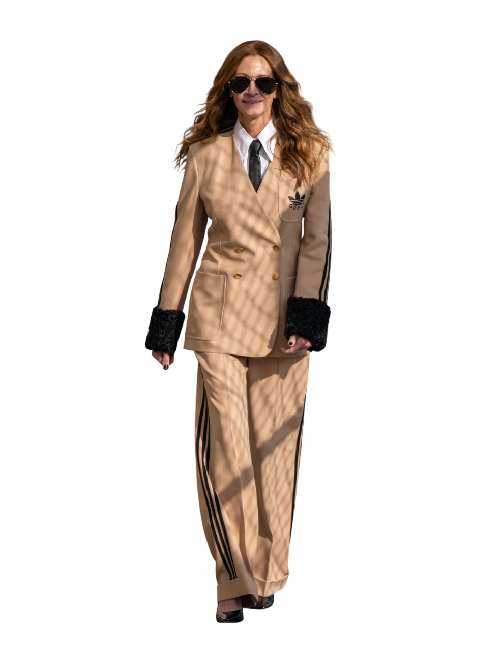 Пожалуй, самый известный выход Джулии Робертс в power suit случился в 1990-м — получать «Золотой глобус» за «Лучшую женскую роль второго плана» в фильме «Стальные магнолии» Герберта Росса актриса пришла в мужском костюме Giorgio Armani. «Я и подумать не могла, что этот наряд произведет такой эффект — и я до сих пор его храню», — рассказала она Vogue в 2024-м. В гардеробе Робертс и без того полно костюмов самых разных силуэтов и оттенков — униформа, которой актриса aka «Королева тейлоринга» (как ее за любовь к жакетам и пиджакам называют W Magazine) верна все с тех же 1990-х. Ее подруга и по совместительству стилист Элизабет Стюарт, наряжающая Робертс уже двадцать лет, приверженность Джулии разделяет: вспомнить хотя бы относительно недавние выходы актрисы — в черном костюме Bottega Veneta на Лондонский кинофестиваль в 2025-м или в костюме «загорелого» цвета из коллаборации Gucci и adidas на шоу Джимми Киммела в 2022-м. Ну или в сером костюме Salon 1884 на шоу Стивена Колберта в том же 2025-м — многие разглядели в нем отсылку к тому самому костюму Giorgio Armani.