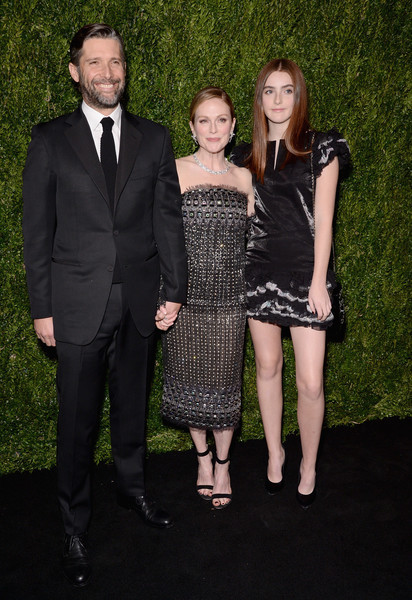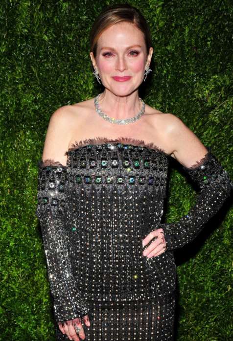 C Chanel у Джулианны долгий и счастливый роман: помимо нарядов для многочисленных красных дорожек актриса удостаивалась даже специального вечера в свою честь — его бренд устроил совместно с МоМа в Нью-Йорке. К вечеринке, посвященной 30-летию Мур в кино, актрису, ее мужа Барта Фрейндлиха и дочь Лив готовила Лесли Фримар — все они надели наряды Chanel. Перед началом торжества Лагерфельд прислал актрисе букет ее любимых белых пионов и трогательную записку. «Мы с Джулианной решили, что она наденет на вечер платье со съемными рукавами и снимет их к ужину, — рассказала Фримар в интервью Vogue. — А еще — впервые наденет одновременно и серьги, и ожерелье Chanel».