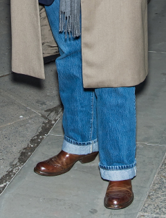 Пожалуй, самый узнаваемый элемент образа Лебовиц — свободный пиджак с мужского плеча. Подобные она носит с молодости, хотя идеальный, по словам самой Фрэн, обнаружила только двадцать лет назад — в лондонском ателье Anderson & Sheppard. Этот бренд со столетней историей славится своим качественным пошивом, звездным списком клиентов, куда в разное время входили танцовщик Фред Астер, модельер Том Форд и — ни много, ни мало — Карл III. При этом до Фрэн единственной женщиной, для которой портные A&S согласились взяться за иглу, была Марлен Дитрих — за нее в 1937-м поручился Дуглас Фэрбенкс-Младший, американский продюсер и тайный любовник актрисы. Подобные «поручительства» до сих пор служат гарантом того, что новый клиент будет способен оплатить счет — за Лебовиц вот поручился один из редакторов Vanity Fair, а она, в свою очередь, привела в ателье режиссера Мартина Скорсезе, автора документального сериала о ней «Представьте, что вы в городе». «Однажды я была в одном из своих пиджаков из сирсакера [тонкая хлопчатобумажная ткань. — Прим. The Blueprint], и Марти зациклился на нем. Я рассказала, откуда он, и с тех пор Марти регулярно покупает вещи в A&S. Когда мы собираемся встретиться, мы сначала созваниваемся — чтобы убедиться, что не придем в одинаковой одежде».