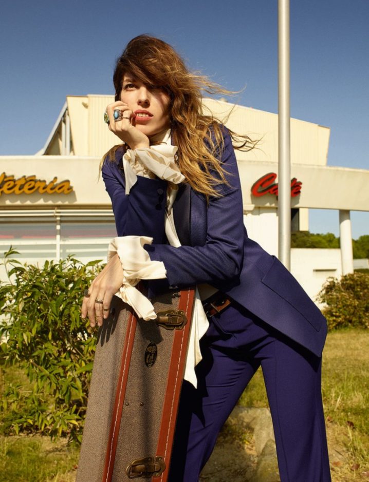 «Я пыталась носить костюмы. У меня был голубой, был светло-зеленый — оммаж Боуи. Все сшили мне на заказ, но после двух концертов я поняла, что все это совершенно мне не подходит. И когда я вернулась к джинсам с футболками, мой барабанщик сказал что-то вроде: «Слава богу, ты снова с нами! Мы так ждали, когда ты избавишься от этого чертова костюма», — рассказала Лу в интервью Matchesfashion. Очевидно, ей больше нравятся отдельно жакеты (хотя и костюмы Лу носит постоянно, что бы она ни говорила): пиджак бойфренда с коктейльным платьем, смокинг с отлично скроенными брюками, свободный битниковский жакет, брючный костюм Gucci, в прошлогодней рекламной кампании которого Лу сыграла Эвридику, викторианский прямой жакет в духе персонажей «Выживут только любовники» Джармуша или бархатный костюм, который певица выбрала для клипа Where to Start. Жакеты тоже вписаны в анналы «французской небрежности» вместе с тельняшкой, балетками и джинсами бойфренда. Посмотрите на фотографии редакции Vogue Paris: кажется, что этот набор выдают им вместе с трудовым договором.