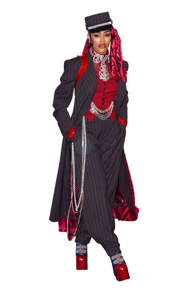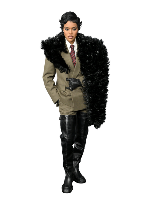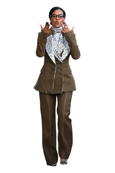 Впрочем, Тейлор любит и куда более закрытые, даже серьезные брючные костюмы — вроде рыжего Laquan Smith на промомероприятии «Битвы за битвой», переливающегося пайетками Rabanne на шоу Джимми Киммела, Alexander McQueen на AFI Awards и Saint Laurent на Critics Choice Awards. Да и что говорить, если на Met Gala 2025 она пришла в костюме из брюк, жилета и пальто с алой накидкой, сшитом американской художницей по костюмам Рут Картер. Наряд, названный Rose From Harlem, был навеян мужским костюмом в стиле зут (с брюками с высокой талией и длинным пиджаком с широкими лацканами и плечами), какие были популярны в Гарлеме в 1930-х. Сама Тейяна в нем — этакая гарлемская дива, какой она была на самом деле всю свою карьеру. Обтягивающие, блестящие и богато расшитые то стразами, то перьями кутюрные платья — как Nicholas Oakwell, Schiaparelli, Miss Sohee и Armani — она подбирает себе сама. К стилистам (в основном к дуэту Уэймана Баннермана и Мика Макдональда, наряжающему, например, Колмана Доминго и Джоди Тернер-Смит) обращается очень редко.