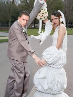 То, что перед нами самая стильная пара страны, вероятно, позавчерашние новости, но то, что они теперь еще и пара супружеская — безусловно событие года. Точнее, три события и несколько съемок. Наряды, созданные Аленой Ахмадуллиной, Александром Арутюновым и Ильей Мигмуном, были как свадебные цветы — белее снега и даже нашей зависти. Нестареющая классика — примерно как Саша + Маша = Любовь.