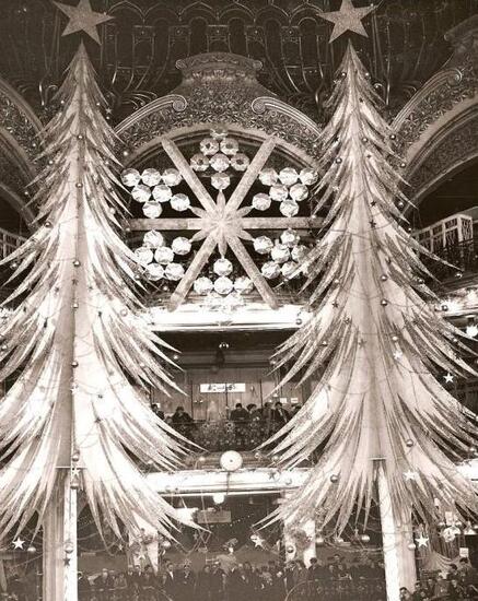 На Рождество 1945-го парижанам, очевидно, было что отпраздновать. К тому же руководство универмага Galeries Lafayette подходило к делу обстоятельно — и каждую осень второй половины 1940-х заказывало оформление рождественских витрин новому видному графическому дизайнеру. Поработать успели Раймон Пейне, Альбер Дюбу, Жан Эффель и Пьер Потье, а потом эту вакансию на десять с лишним лет занял американец Том Кио — иллюстратор парижского Vogue, женатый по удачному стечению обстоятельств на внучке президента Тедди Рузвельта.