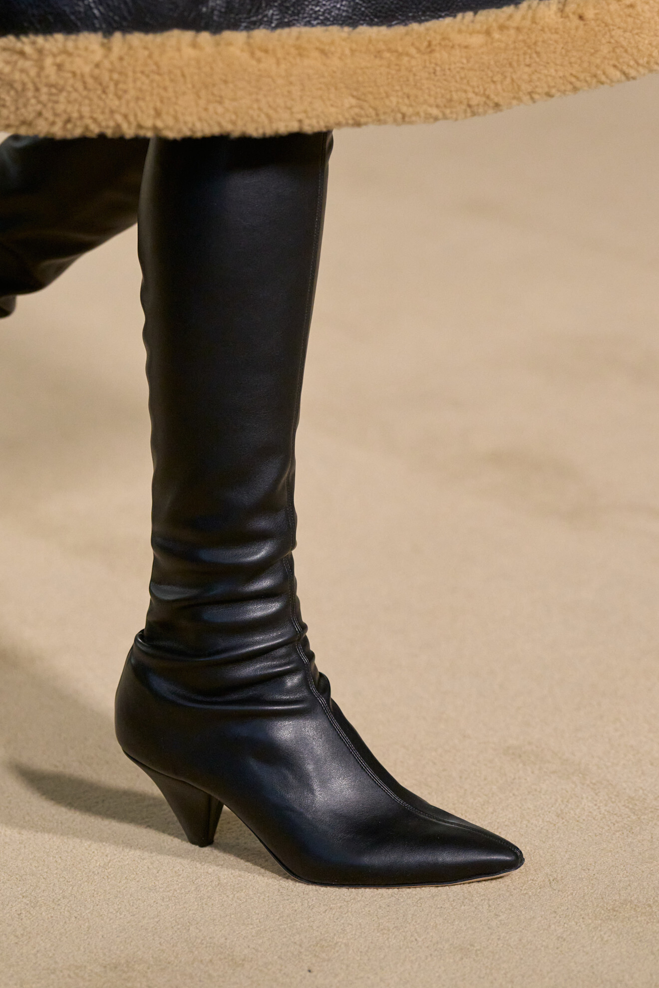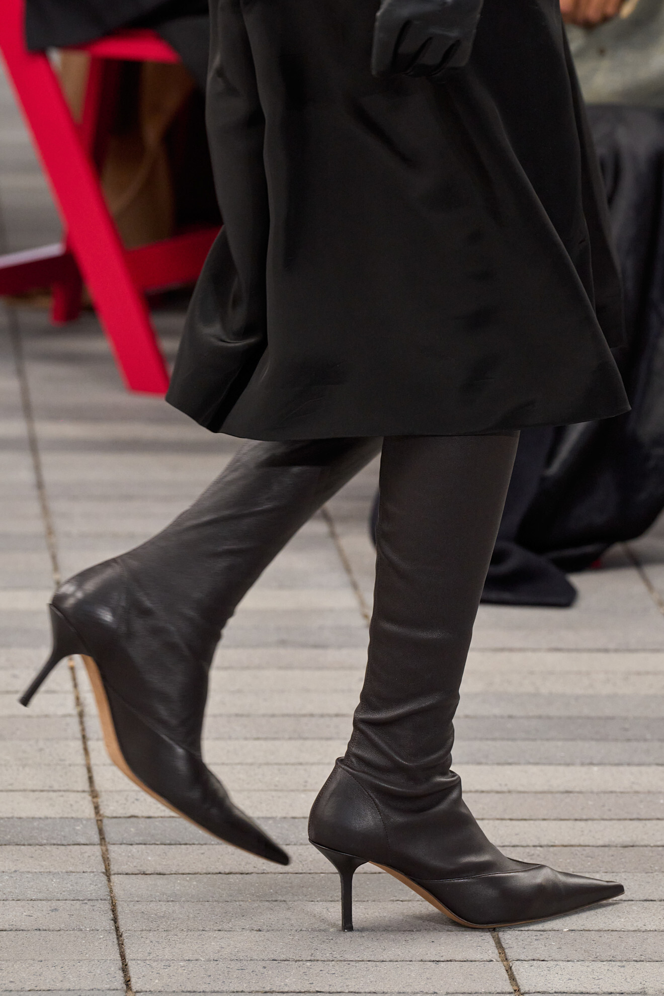Сапоги Prada в перьях, затянутые на шнуровку по всей длине, конечно, произвели впечатление, однако тренд на подобную обувь наметился еще осенью 2025-го, так что Миучча Прада и Раф Симонс, можно сказать, просто подогрели к ней интерес. Не меньший вклад в новое дыхание тренда сделала новый дизайнер Marni Мэрил Рогге, которая оснастила шнуровкой, как у кроссовок, слингбэки и лаковые сапоги. Шнурки на последних были обмотаны вокруг голенищ — берите на заметку этот стилистический трюк.