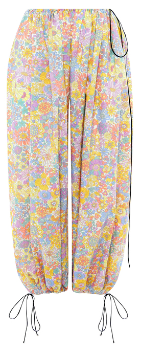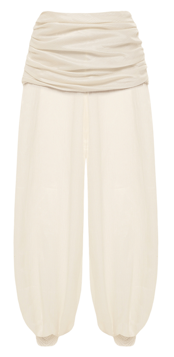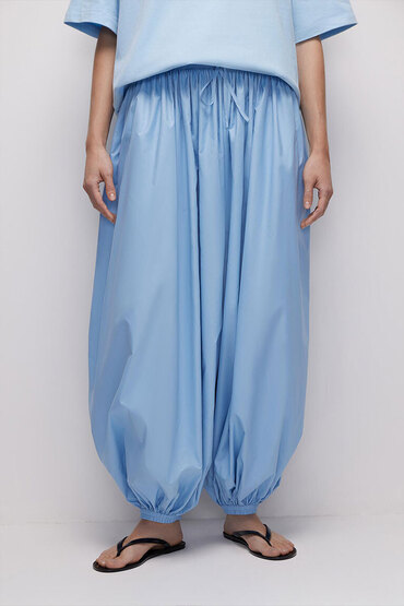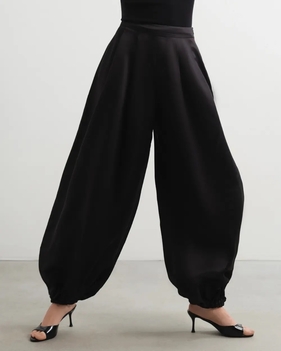 Чем бы вы ни развлекались этим летом, брюки-аладдины точно поддержат ваши намерения: инфлюенсеры нашего времени уже доказали, что в этих брюках можно и в пир, и в мир. Асмат Чкотуа надела шуршащие брюки Жасмин вместе с жакетом в театр, Мария Калашникова выгуляла гипертрофированно объемные шаровары с кроп-топом (а еще с вьетнамками и белыми носками) в отпуске. Блогер Ливия тем временем показала, как адаптировать к жизни те самые воздушные брюки из тафты с показа Alaïa, — понадобится приталенный жакет и балетки. По информации The New York Times, на модель авторства Питера Мюлье (стоимостью 2150 долларов) магазины уже вовсю размещают ярлык «солд-аут». Что уж говорить о более бюджетных версиях! Российский массмаркет-бренд Limé за этот сезон успеть выпустить уже несколько версий шароваров, и все были распроданы за короткий срок. Но вот где их еще можно купить — поспешите.