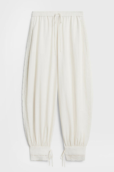 «Эти кружевные шаровары способны изменить то, как молодые женщины представляют себе сексуальную одежду в 2025 году», — написала модный критик Vogue Николь Фелпс о брюках, которые мы увидели на показе Chloé весна—лето 2025. Широкие в бедрах и плотно обнимающие щиколотки, из невесомого кружева цвета молока, персика и сливочного крема — эту модель, дополненную на шоу короткими ажурными топами и шнурованными туфлями на каблуке, креативный директор Чемена Камали включила в коллекцию, разглядывая архивы Карла Лагерфельда. А конкретно — его линию Chloé весна—лето 1978. Говорят, именно в таких брюках Кайзер моды представлял себе современную женщину того времени: свободную и богемную. Сегодня взгляды Лагерфельда кажутся актуальными не только Фелпс и Камали, но и, например, Питеру Мюлье с Алессандро Микеле. На весенне-летнем показе Alaïa модели демонстрировали шаровары с топами бандо, на шоу Valentino — с шелковыми туниками и жакетами, расшитыми блестящими цветами. Просто принцессы Аграбы XXI века.