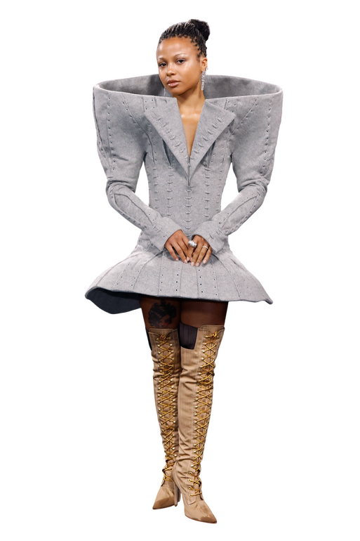 Hip-Hop Music Awards, а Канье — на BET Awards. В основном все были в джинсах, и, будем справедливыми, тандем с бархатными брюками Chrome Hearts, как в случае с Тимоти, сегодня выглядит куда более свежо. И все же не более удивительно, чем тимберленды в виде сапог на каблуках с платьем-упаковкой, которые придумал для Met Gala 2025 и актрисы Махалы дизайнер Рауль Лопес.