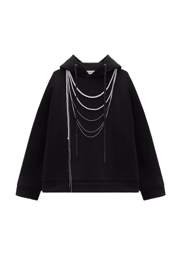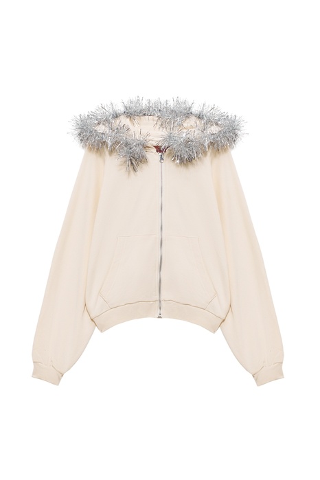 Кстати, Playgoer в вопросе украшательства базовой одежды зашел дальше коллег. Марка с большим будущим дизайнеров Валентины и Евгения Хейлик недавно запустила сервис кастомизации одежды «Декорарий». Так, с помощью мобильного приложения клиенты могут «нарядить», например, бомбер бренда не только стразами, но и бусинами, цепями и цветами — а команда реализует получившийся проект. «За почти две недели с запуска в “Декорарии” было создано больше тысячи эскизов. Правда, не всем клиентам легко создавать их с нуля — в таких случаях они выбирают уже существующие решения и немного изменяют их. Чаще всего украшают худи — оно универсально». Особенно в плане декора. Худи к лицу и вышивка переливающимся стеклярусом, и россыпь сверкающих брошей. Впрочем, остроумней всех здесь выступает американский бренд Praying дизайнеров Скайлара Ньюмана и Алекса Хаддада, нашивающих на худи старую добрую елочную мишуру. Повторить такой стайл-трик со своей видавшей виды толстовкой не сложно (особенно тем, кто на утренниках играл роль снежинки или зайчика) — тем более что новогодние праздники, помноженные на аврал, буквально созданы для чего-то простого, но нарядного.