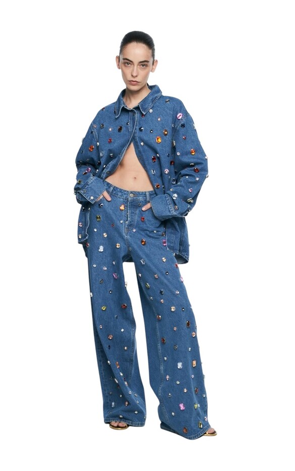 К тому же простую, но нарядную одежду в коллекциях 2025 года показали Fendi и Casablanca, Stella McCartney и Libertine. Последние не сговариваясь пошили сверкающие канадские смокинги. Такие можно найти и в линии Upcycled Miu Miu (Миуччу Праду с ее украшенными пайетками кардиганами из коллекции осень—зима 2024 в целом можно считать одной из основоположниц тренда), и в ассортименте российского бренда «1811». Их комплект из свободных джинсовых брюк и рубашки вручную расшит крупными разноцветными кристаллами. Отделу моды The Blueprint удалось разглядеть