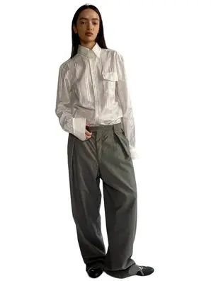 Хейли Бибер от Элорди тоже не отстает, доказывая, что grandpa chic вполне себе гендерно-нейтральный. В конце октября модель праздновала запуск нового продукта ее косметического бренда Rhode — крема Barrier Butter — в свободном костюме с мужского плеча, рубашке и галстуке из коллекции Saint Laurent весна-лето 2025. И хотя сначала нам привиделось, что эти костюмы Энтони Ваккарелло — новое прочтение тренда на power dressing, сейчас кажется, что они максимально перекликаются именно с трендом на элегантность, маскулинность и строгость «дедушкиного шика». При этом на контрасте с Ваккарелло более расслабленную версию ретрогардероба наших дедушек, адаптированную под девушек, можно обнаружить в коллекции Miu Miu весна-лето 2025. Миучча Прада показала тренчи, олимпийки и сандалии, которые в целом легко представить и на героях снимков @grandparents. Да и что говорить, если показ закрывал 69-летний актер Уиллем Дефо: в темно-синем пальто поверх пуловера в тон, из которого выглядывала белая рубашка, в серых широких брюках и черных ботинках с пряжками.