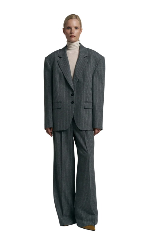 Марти «Игла» Рейсман был пронырливым и остроумным чемпионом США по настольному теннису (в 1958, 1960 и 1997 годах). За свою почти 60-летнюю (!) карьеру он успел выиграть более 20 крупных титулов, стать миллионером и прослыть иконой стиля — ведь к столу он подходил исключительно в ярких рубашках, широких брюках, очках-авиаторах и шляпе-федоре. Говорят, он всегда носил с собой стодолларовую купюру, которой для надежности мерил высоту сетки, а еще сигарету, которую — уже для потехи — разламывал пополам одним ударом по мячу. В общем, тот еще кадр, оставивший после себя мемуары «Игрок на деньги: Признания величайшего чемпиона Америки по настольному теннису и шулера», которыми зачитался американский режиссер Джош Сафди — и придумал спортивную драму «Марти Суприм» с Тимоти Шаламе в главной роли. И вот на уже стартовавших в Нью-Йорке съемках актер был замечен сначала в светло-оливковой рубашке с крупным воротником, темно-синем жилете и коричневых брюках с высокой посадкой, а затем в свободном костюме с широким галстуком и в классических туфлях — получился гардероб этакого эксцентричного дедушки, а это очень модный в этом сезоне типаж.