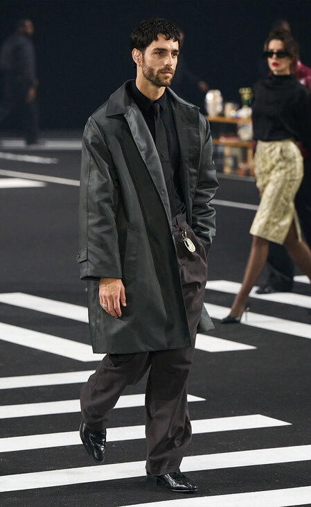 Острые на язык редакторы американского GQ (рюкзаку Osprey Чарли досталось и от них — «да это количество ремней и пряжек ему никогда в жизни не понадобится») описывают его как человека практичного, но совсем не модного. Но с этим можно поспорить. Вспомним показ Saint Laurent весна-лето 2026, где цветные дождевики шли исключительно поверх плечистых пиджаков и рубашек — прямо в духе Чарли. Шоу Dries Van Noten осень-зима 2026/2027, где модели в очках показывали утилитарные куртки поверх накрахмаленных белых сорочек, Louis Vuitton с тем же стилистическом трюком или Willy Chavarria. Так что предлагаю обойтись без драм и просто признать: утилитарная куртка на все случаи жизни — вовсе не стрем, а Чарли — наша икона стиля как минимум на ближайший год.