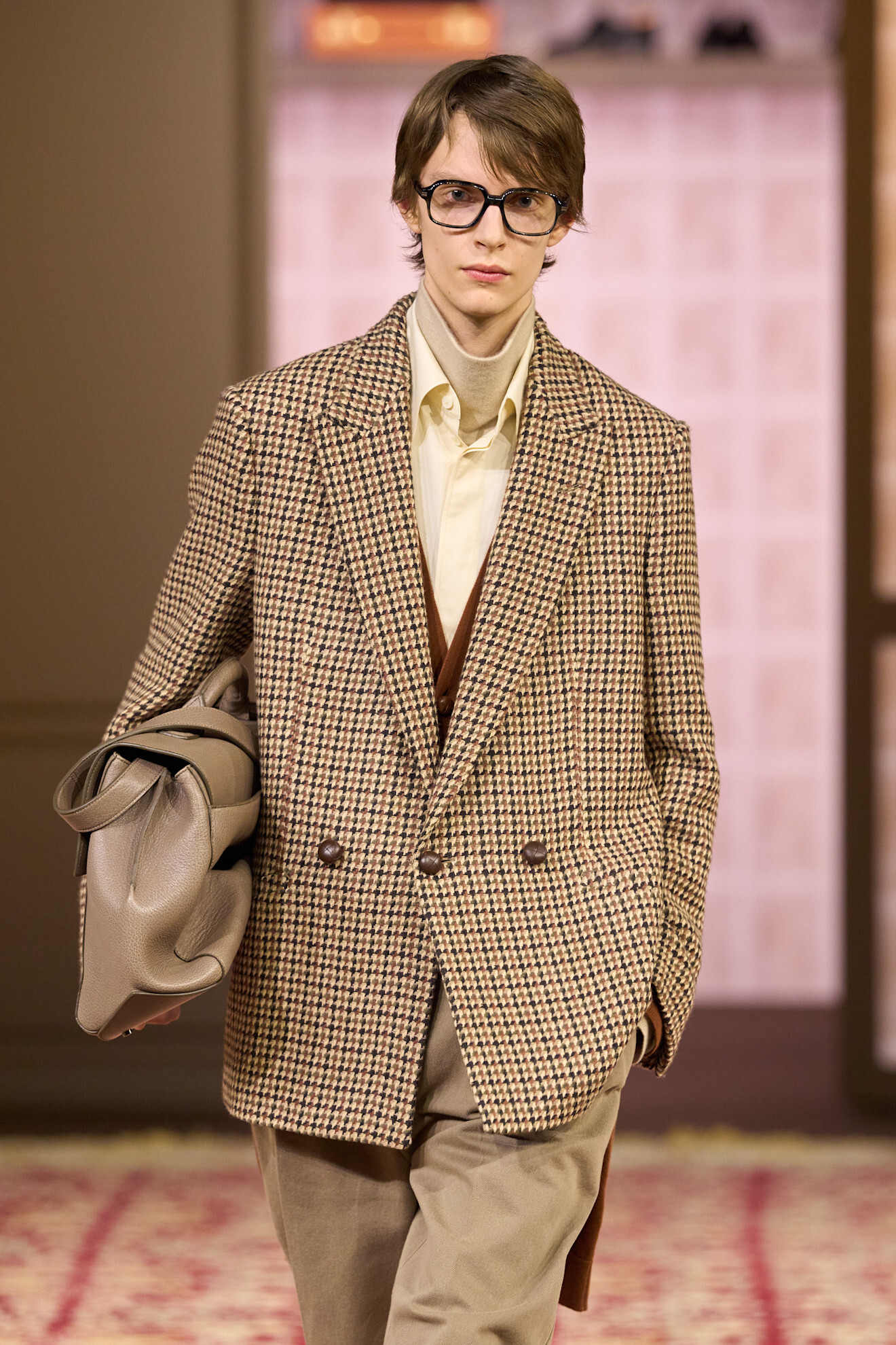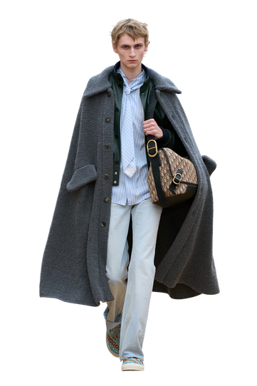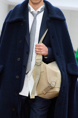 Склейка — и сумка-мессенджер становится одной из главных героинь вот уже второго подряд мужского шоу Dior Джонатана Андерсона. Вязаная, дополняющая узковатые джинсы и топы в пайетках, на показе осень—зима 2026/2027 и будто из пальтовой ткани, а также из брендированного канваса на шоу весна—лето 2026: там сумка виднелась из-под объемных летящих кардиганов-кейпов и поверх полосатых рубашек с галстуками навыворот. Крупная кожаная «почтальонка» мелькнула на весенне-летнем женском шоу Chanel Матье Блази (в тандеме с брючным костюмом, что называется, «по фигуре»), еще более вместительная, из плетеной кожи, в дебютной коллекции Bottega Veneta Луиз Троттер того же сезона. Следующей осенью и зимой «мессенджер», помимо Андерсона, предлагают носить Louis Vuitton с Фарреллом и Zegna. Причем, очевидно, намекают: чем габаритнее сумка, тем лучше. Блокнотов и карандашей влезет — умотаться.