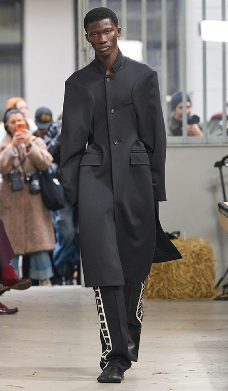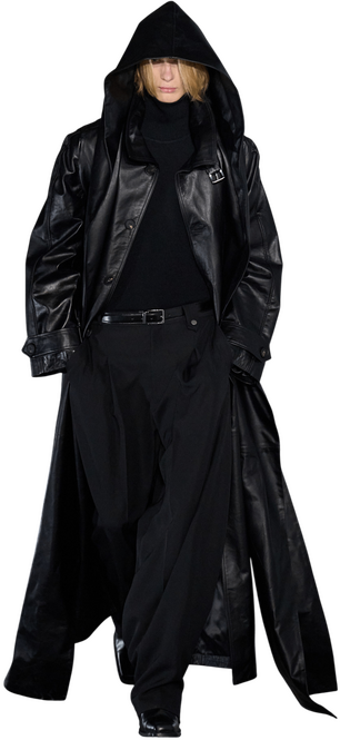 К слову, американский Vogue считал тренд слегка радикальнее — приписал подобные черные пальто архетипам гробовщика и главного героя «Матрицы». Но, думается нам, если двойники Нео выглядели бы на подиумах уверенно как минимум благодаря модным темным очкам, то клоны Родиона — кажутся скорее растерянными и скрытными. Взять образ с показа Kiko Kostadinov — опять-таки с пальто и прической, челка которой полностью скрывает глаза модели. Или с шоу Egonlab — где модель, кажется, прячется под капюшоном черного плаща. Получается, что самый модный рецепт рефлексии на сегодняшний день — поднять ворот повыше, спрятать голову поглубже и внимательно вглядеться в отражение в зеркале: может, в самом деле вы и убили-с?