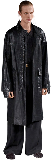 Самый видавший виды «Родион» получился у Prada — за счет черного пальто, помятость которому обеспечивает расположение пуговиц, и якобы грязных манжетов серой рубашки. Самый исхудавший нашелся у Setchu: Сатоси Кувата пошил черное пальто с эффектом экстремальной худобы, не только затянув пояс, но и сместив пойменный шов рукавов к груди. А вот самый грозный близнец Раскольникова прошелся на шоу Songzio — все из-за черного пальто в пол, оголяющего разве что длинные перчатки из черного меха и кожи. Да и чего далеко ходить, когда двойника героя Достоевского можно застать в недавней коллекции Ushatava Collectible Pieces — вспомнить модель в длинном черном пальто с заправленными в карманы рукавами. Или не менее длинное черное пальто Walk of Shame — для женской реинкарнации Родиона.