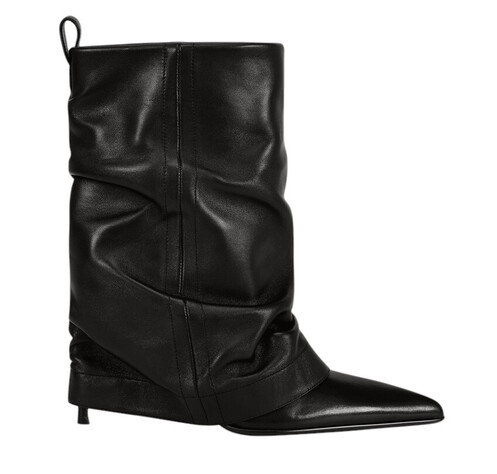 Этот тренд доказывает, что в нынешние времена в моде все и сразу. Так, наряду с суперузкими сапогами на подиуме нашлось место моделям с ну очень свободным голенищем — настолько, что оно складывается в гармошку (а если и нет, то на сапогах есть имитация складок). Яркие примеры — сапоги Balmain и Sportmax, чьи голенища напоминают кожу шарпея. Сочетать предлагается с короткими шортами, длинными юбками и старым добрым дуэтом «легинсы + худи».