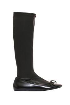 В моду настойчиво возвращаются облегающие сапоги — в том числе те, что принято называть «чулки». Тут можно провести аналогию с камбэком скинни: хотим мы этого или нет, стараниями дизайнеров узкие джинсы таки вернутся в обиход модников. Нет сомнений и в том, что заметное место в их гардеробе уже этой осенью займет крепко обнимающая икры обувь: такую показали в сезонных коллекциях главные бренды-трендсеттеры — Chloé (поблескивающие бежевые сапоги до колена) и Miu Miu (непривычно яркие красные, фиолетовые, желтые пары той же длины).