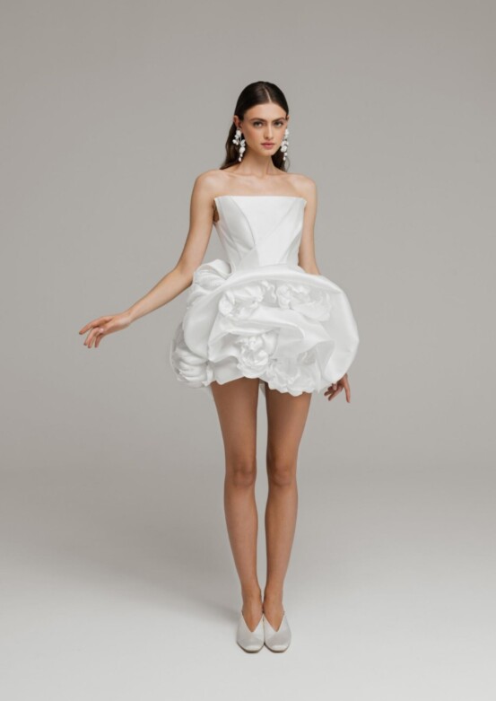Большой тренд прямо сейчас — свадебные платья «два в одном». Невестам уже недостаточно одного наряда: после торжественной части они переодеваются в более расслабленный образ, в котором удобнее танцевать. Поэтому популярностью пользуются наряды, которые можно трансформировать. Такой, например, выпустил российский Namelazz — платье с двойной юбкой, нижнюю часть которой можно отстегнуть. Трансформер — хороший вариант и для тех, кто играет свадьбу на берегу моря. Вязаное платье плюс нижняя сорочка — идеальная комбинация для такого формата. После официальной части можно остаться в неглиже и устроить пляжную вечеринку.