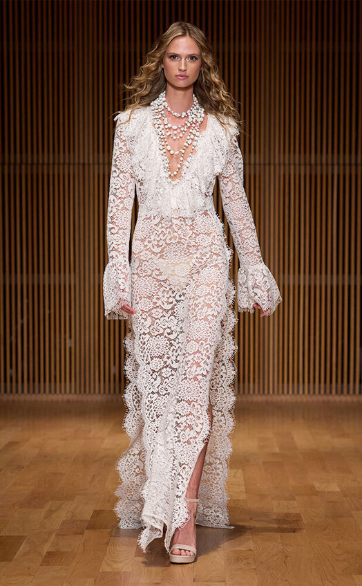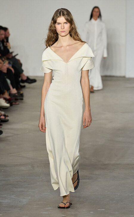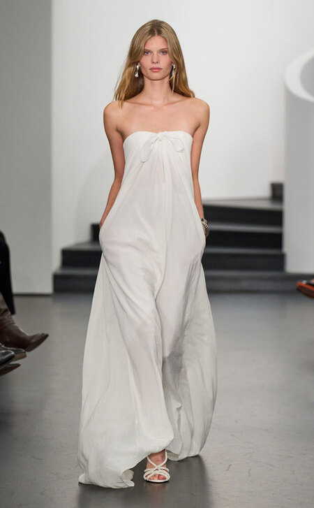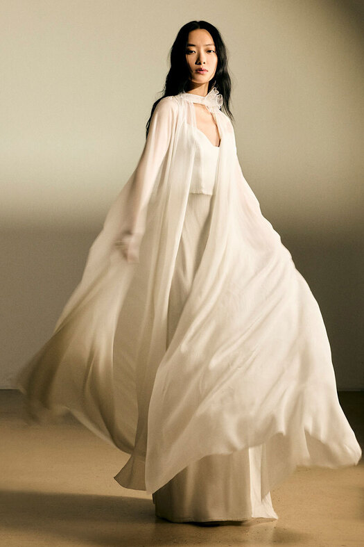 «Идеальны для летних свадеб на природе», — кивает стилист Валерия Никольская в сторону платьев в стиле бохо: из натуральных тканей вроде хлопка и льна, с рюшами и кружевом. Популярность этого тренда отмечает и основательница бренда Say No More Кристина Лисовец, включившая шорты, рубашки и платья в стиле бохо (которые вполне могут стать «свдебной сменкой») в коллекцию весна-лето 2026.