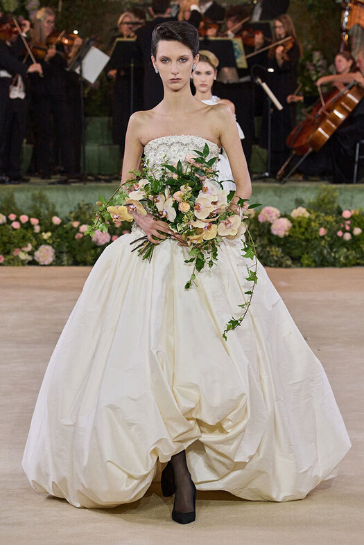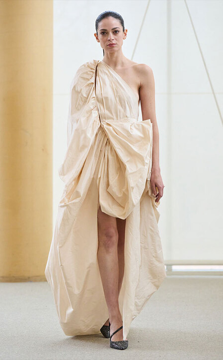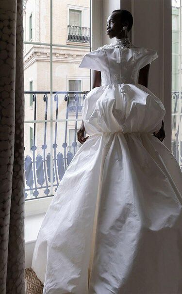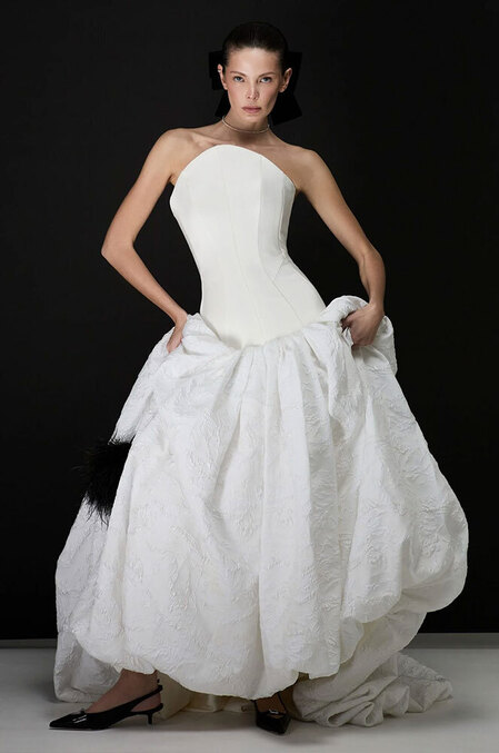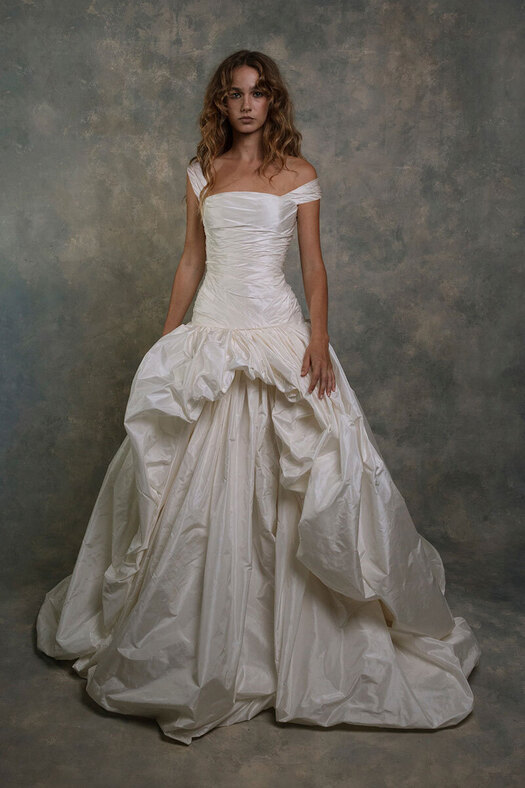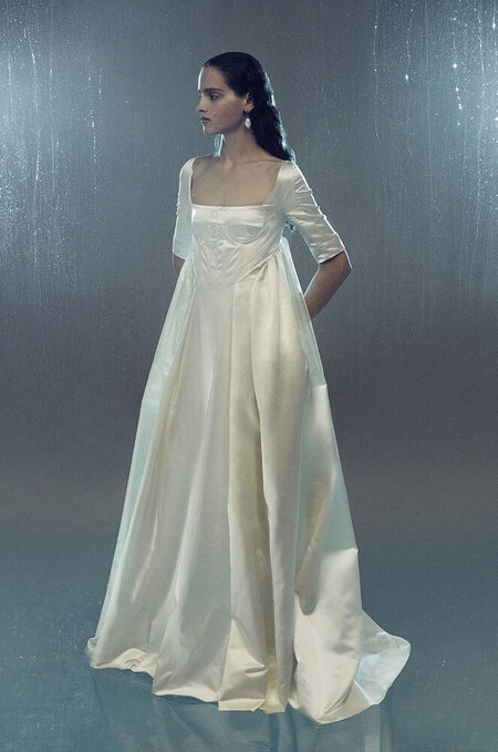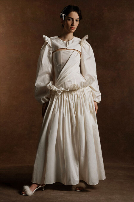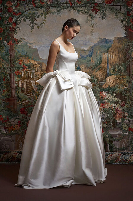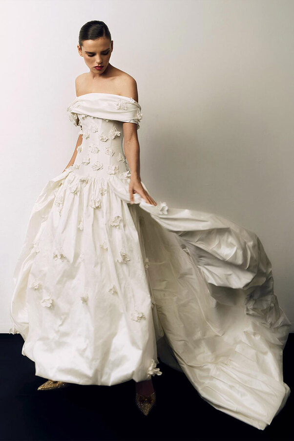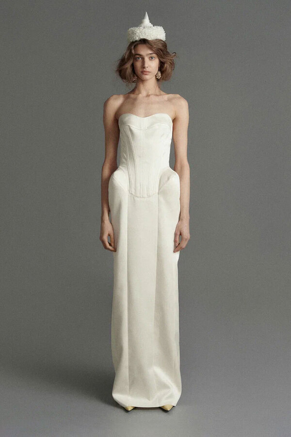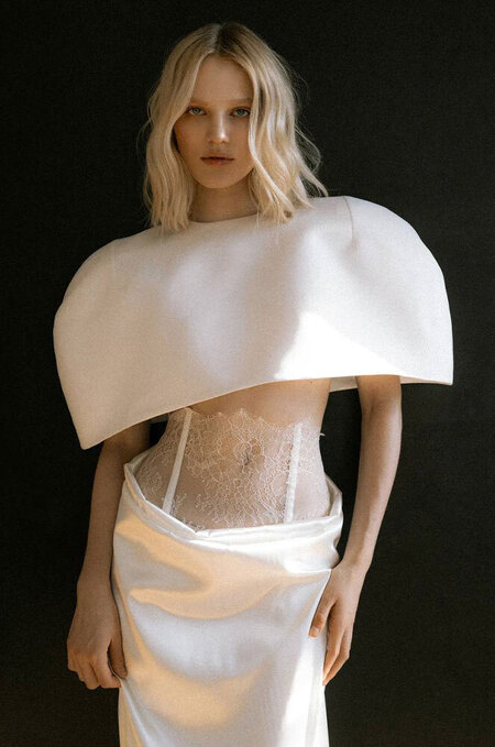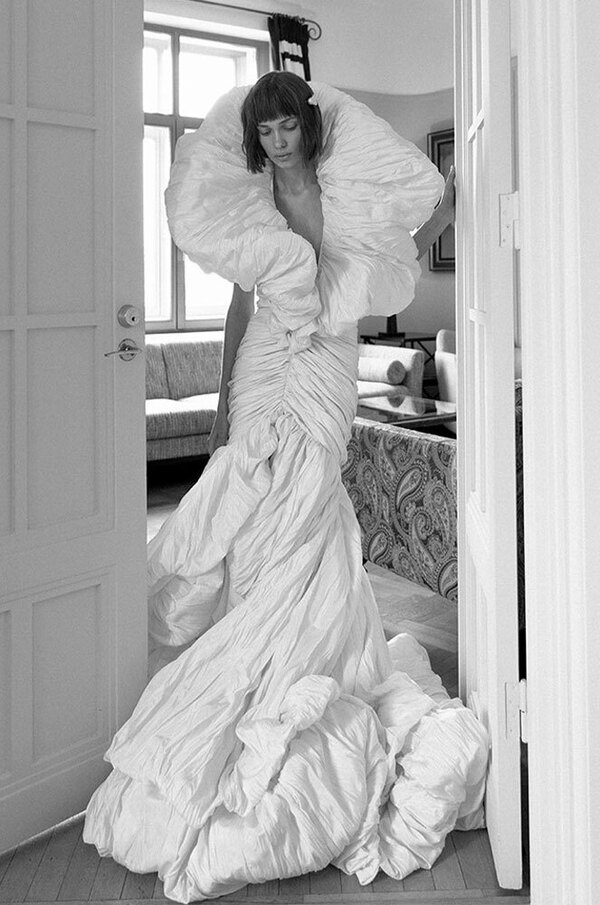 Частенько в ателье к той же Арине Богановой невесты приходят за платьями с акцентными бедрами — будь то валики (как у Simone Rocha), объемные складки (как у Viktor & Rolf) или панье (как у House of Gilles). Вариант для тех, кто желает выглядеть как статуэточка.