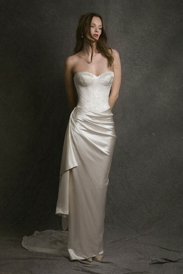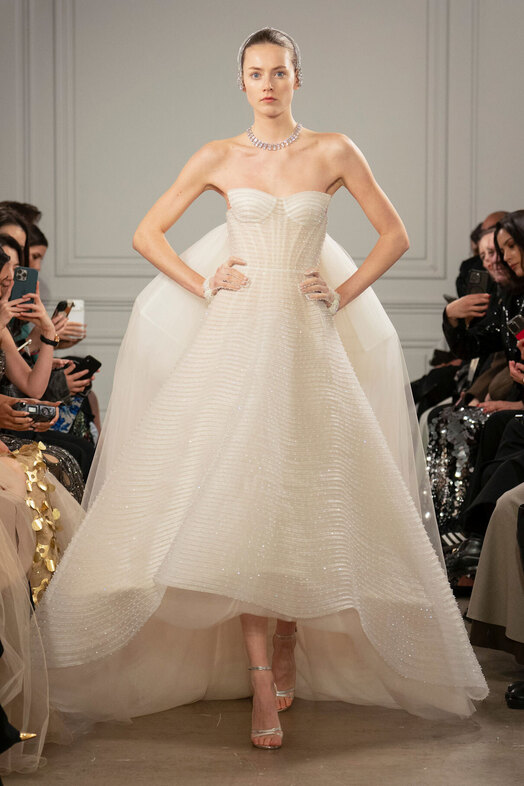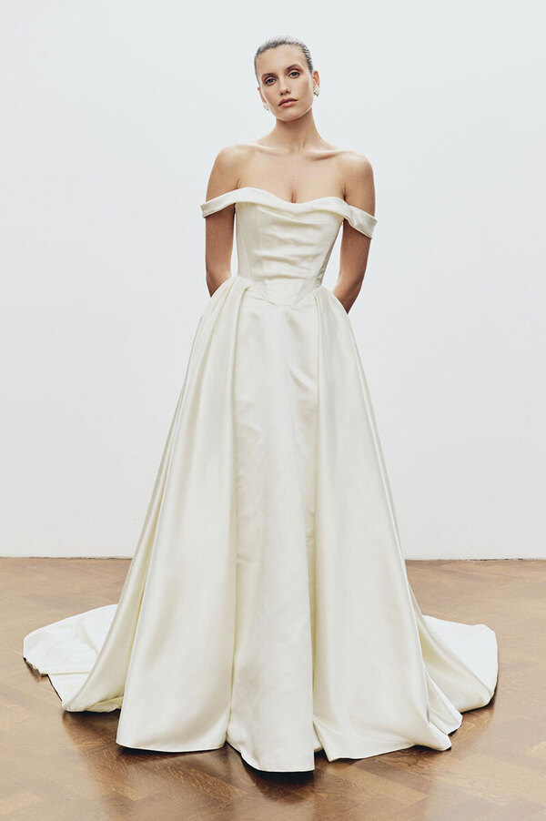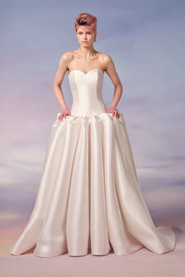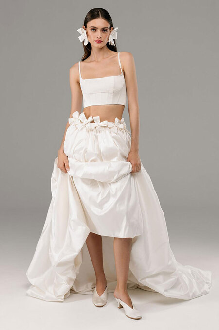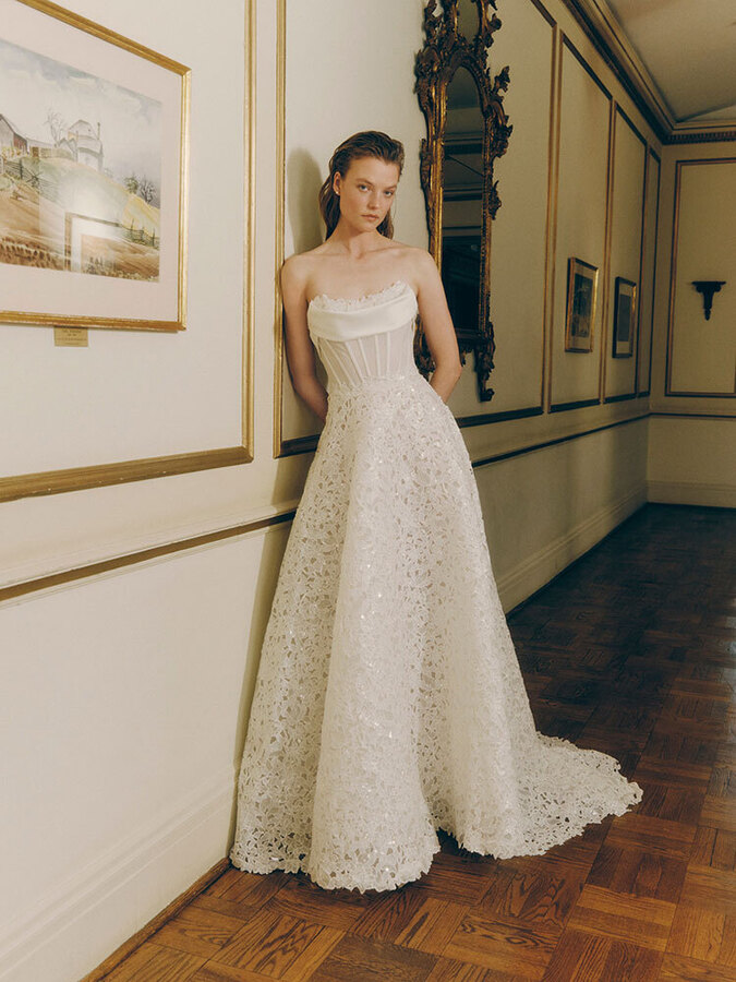 По словам основательницы уже другого именного ателье Арины Богановой, в 2026-м невесты снова хотят пышные наряды: «Но при этом максимально легкие». Так что никаких сотен слоев органзы или фатина под подолом — только облегченный каркас, поддерживающий его форму. Или крупные складки на поясе, задающие силуэт бальной юбки. «Возможно, это влияние консервативных ценностей. А возможно, просто желание воспользоваться одним из немногих случаев, когда можно надеть платье принцессы», — рассуждает колумнистка Vogue Шелби Вакс.