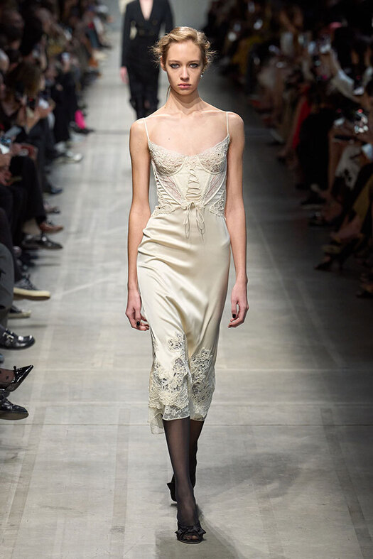 «Менее смелые могут переодеться в эти наряды вечером, когда пожилые гости лягут спать», — подшучивает американский Vogue, отмечая популярность свадебных платьев в бельевом стиле: например, со спадающими лямками и из полупрозрачных тканей (или натурально напоминающих мятые ночнушки и простыни — как у Versace). «Причем это даже не тренд, а массовая атака. Многие считают, что эти образы — из будуара Марии-Антуанетты. Но она так, к счастью, никогда не одевалась», — иронизирует основательница именного свадебного ателье Татьяна Кочнова.