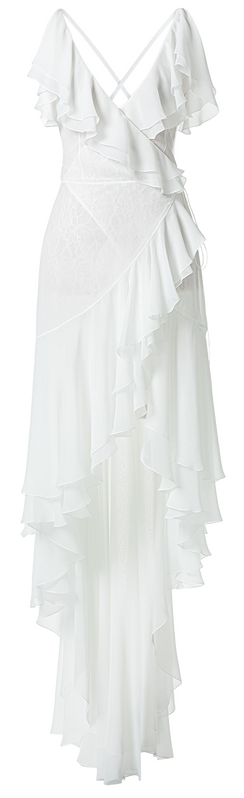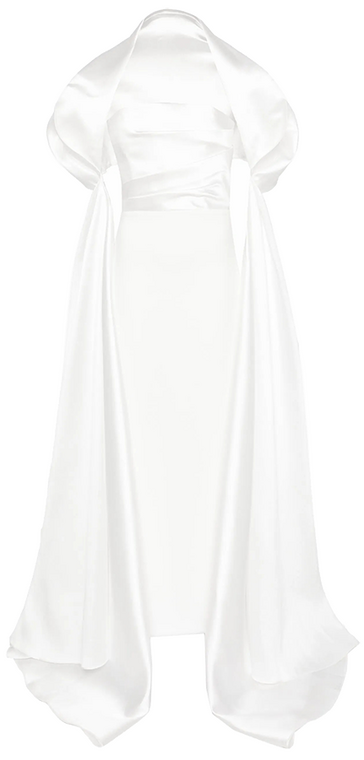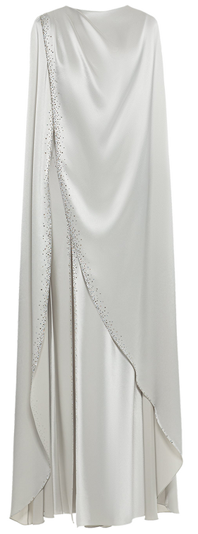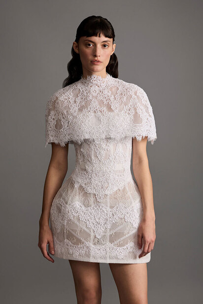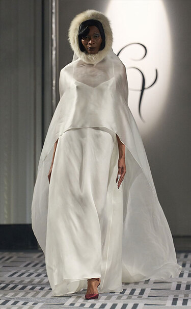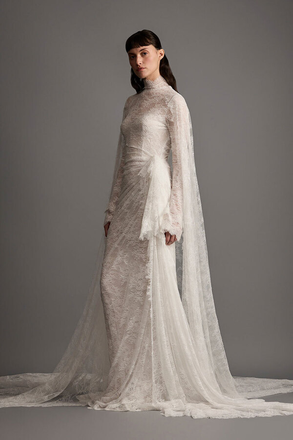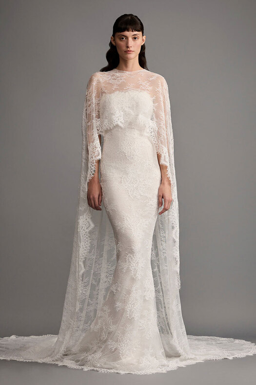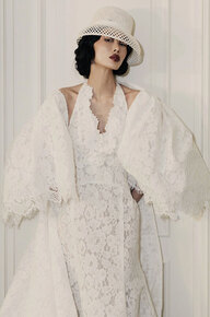 «В этом сезоне невесты, ищущие альтернативу фате, присматриваются к платьям с кейпами и всяческими накидками, — вспоминает Лисовец. — Они добавляют образам драматургии, особенно в движении». В общем, в таких сидеть за столом на торжестве не захочется.