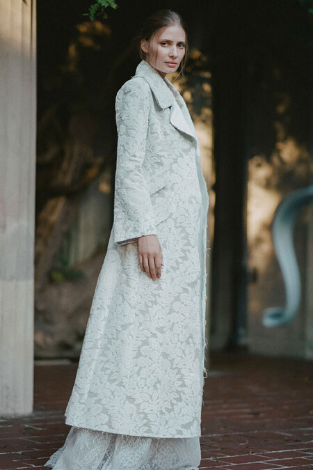 «Свадьба осенью или зимой — не повод жертвовать комфортом», — настаивает тот же Vogue. Впрочем, можно попробовать променять платье на пальто, даже если свадьба летом: просто выбрать пальто (или плащ) из легкого материала — например, из той же тафты — и надеть его в качестве единственного слоя.
