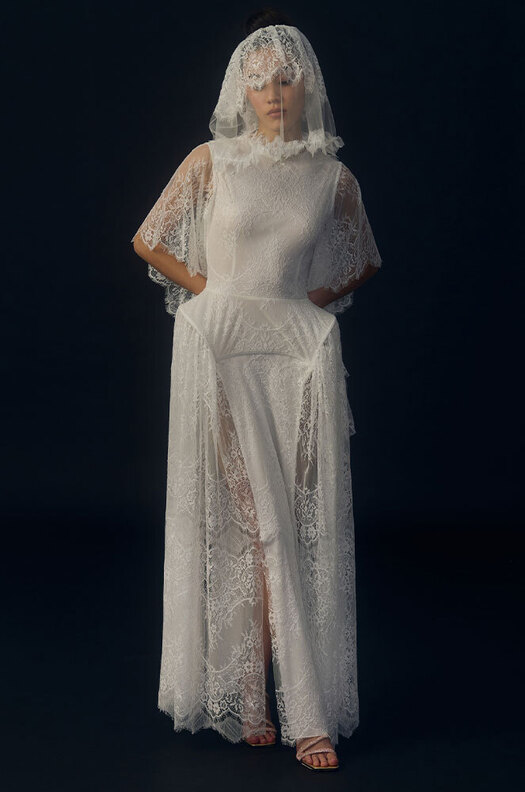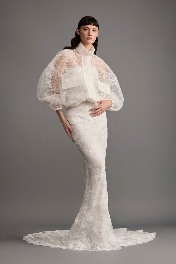 «Один из заметных трендов — это, безусловно, кружево. В особенности французское кружево шантильи. Платья из него смотрятся как вторая кожа», — рассказывают в бренде Edem. Впрочем, о том, что кружево окончательно перестало восприниматься невестами как устаревший материал, говорят и Никольская, и Максимова, и Vogue (что вовсе называет его главнейшим трендом). «Ну и пышная и кружевная фата точно еще никого не портила», — справедливо замечает стилистка Анастасия Соломеина.