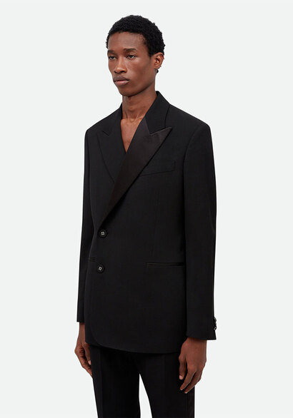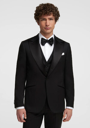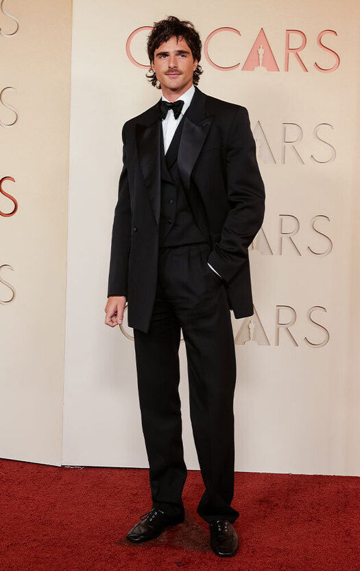 В ателье Costume Code, где женихов обшивают по индивидуальным меркам, голосуют за классику в виде смокинга. Говорят, его можно вписать в любой формат мероприятия, от формального до расслабленного, а плясать нужно от цвета и посадки (о них поговорим ниже), а также от фактуры — положим, бархатный смокинг в духе Колмана Доминго, на которого рекомендует равняться дизайнер Дмитрий Логинов, расслабит вас чуть больше, чем костюм из баратеи. Образцовыми стилист Рамиль Мустафаев называет посаженные по фигуре смокинги Пола Мескаля на «Золотом глобусе» и «Оскаре» 2026: классический черный Gucci и чуть менее классический, с едва заметными лацканами, черный Celine.