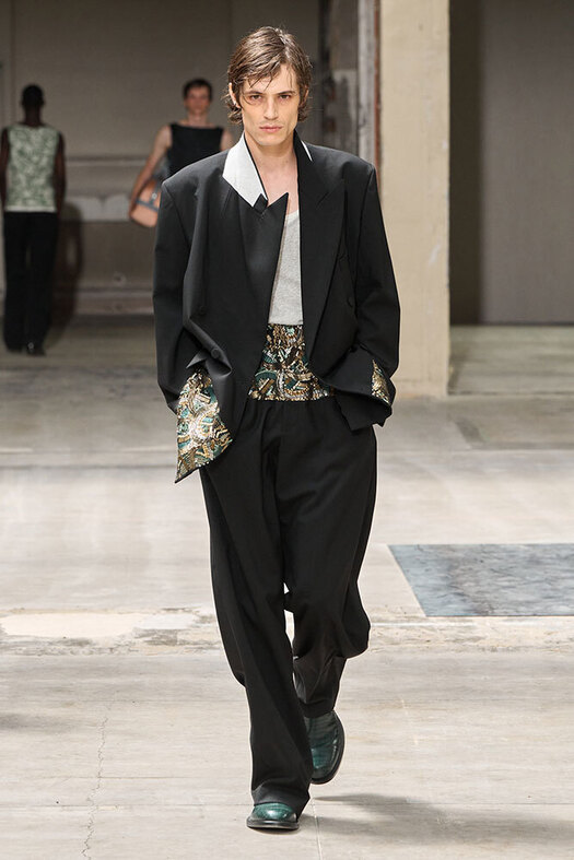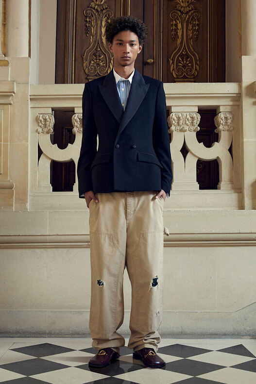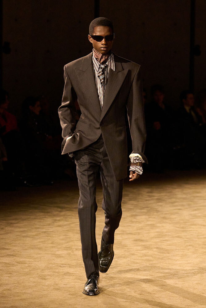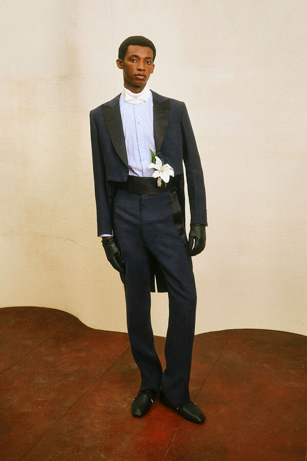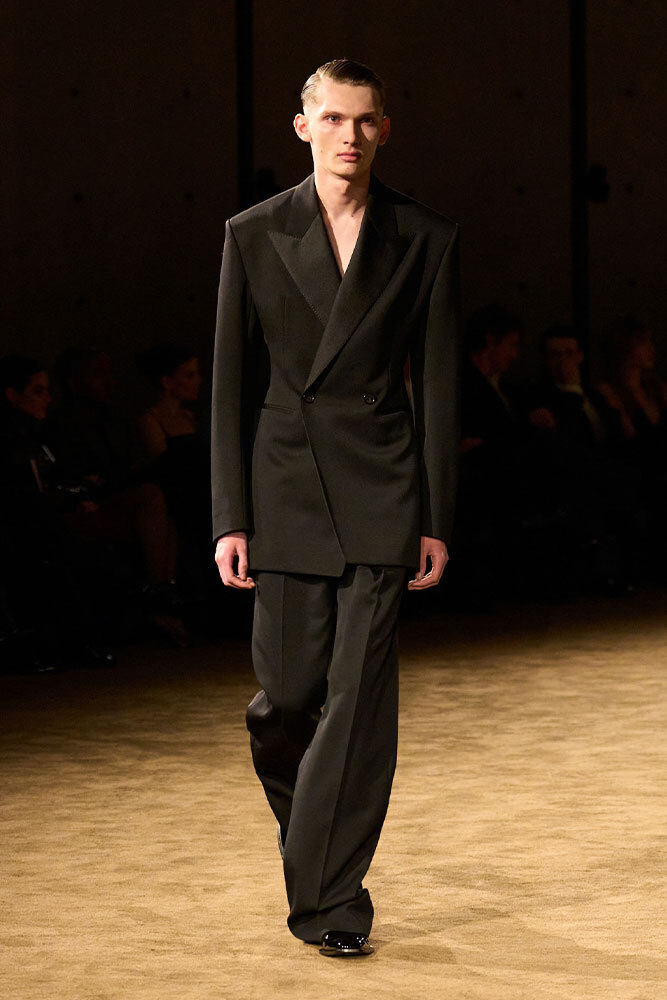 Второе место в Costume Code отдают костюму-тройке — и, кажется, против аргумента ретейл-директора ателье Георгия Балашова не попрешь: «Часто в процессе мероприятия именно тройка оказывается самой практичной — за счет того, что можно снять пиджак и не поломать образ». У стилиста Хабиба Сулейманова, однако, тоже железный аргумент — в пользу фрака: именно в нем (плюс с серебряной чашей черешни) так безупречен Луи Гаррель в свежем кампейне Dior. Фраки, кстати, уважает и одна из самых модных мужских дизайнерок прямо сейчас — Грейс Уэльс Боннер. Например, в коллекции осень-зима 2026/2027 она предлагает серую версию с лацканами, лампасами и камербандом цвета оливок.
