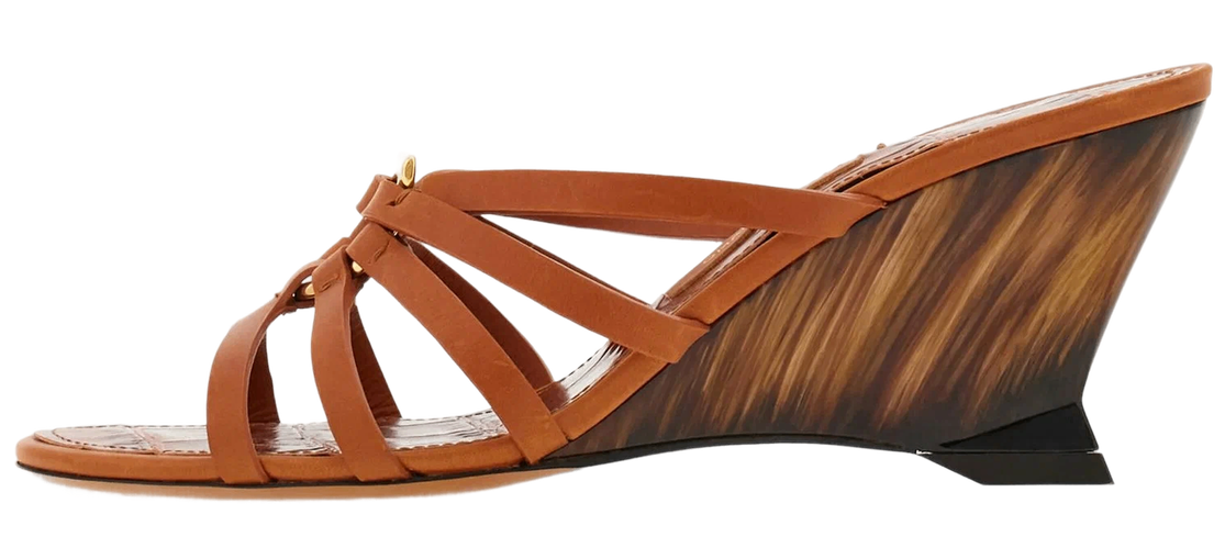 Танкетку, чуть менее удобную, зато точно уместную на ивентах разной пышности, мы уже несколько сезонов видим на подиуме. Bottega Veneta предложили носить мюли на «скале» из поблескивающей кожи еще во время шоу осень-зима 2023/2024. Через год бренд поддержали Dries Van Noten, Saint Laurent, но главным образом — Chloé, на чьем показе — дебютном для Чемены Камали — комично, но эффективно сработал продакт-плейсмент: буквально весь первый ряд (включая Сиенну Миллер, Джерри Холл и Пэт Кливленд), сидя нога на ногу, демонстрировал босоножки бренда на монструозной, а-ля деревянной танкетке.