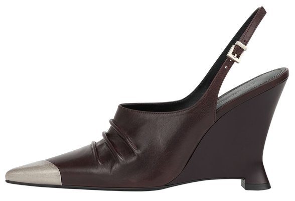 «Интерес к танкетке подогревает сразу несколько факторов, — говорит директор по маркетинговым коммуникациям Ekonika Юлия Булгакова. В апреле бренд совместно с YuliaWave выпустил кожаные слингбэки на танкетке; теперь их узнаваемый металлический мыс торчит, кажется, изо всех инфлюенсерских соцсетей. — В первую очередь это растущая популярность ретроотсылок — особенно к 1970-м и 1990-м, эпохам, когда танкетка была своеобразным символом свободы и силы».