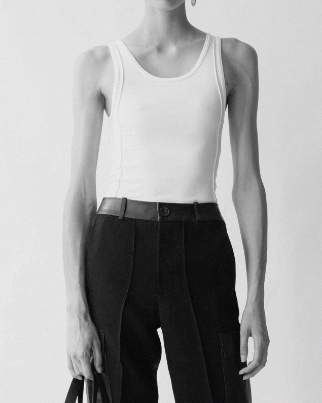 «Майка-алкоголичка — предмет гардероба, который сразу вызывает у меня ассоциацию с 90-ми, — говорит стилист Рамиль Мустафаев. — Особенно с молодой Кейт Мосс, у которой их, кажется, были десятки: белые, серые, кремовые, на широких лямках, тонких. Есть основания предполагать, что в середине–конце 2010-х годов в моду их опять ввели именно модели (Джиджи, Белла, Кендалл, Мика Арганарас...), которые после каждого шоу переодевались в самые обыкновенные вещи. А что может быть более расслабленным, чем обычная белая майка?»