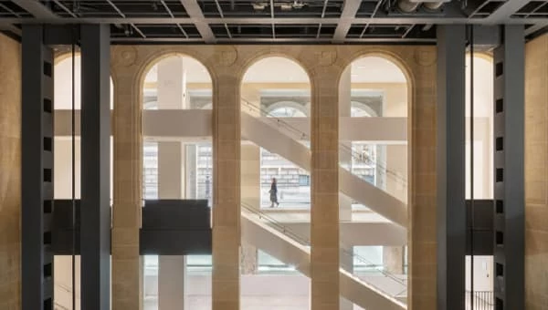 Важный герой нового здания — конечно же, город: огромные окна впускают прозрачный парижский свет, дождь и солнце, кроны деревьев, прохожих, потоки машин и фасады исторических зданий и дворцов.