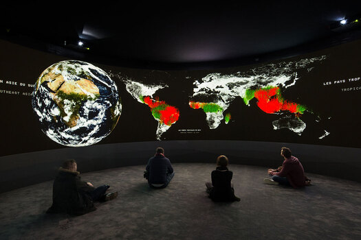 Я хожу по трем этажам и ловлю себя на том, что уже через полчаса растерялась и не вполне понимаю, на чем фокусироваться. Хочется смотреть на здание, которое изнутри подавляет объемами, — его видно целиком, насквозь, взгляд успокаивается только видами Парижа через окна-аркады. Многообразие тем, сюжетов, имен в экспозиции совершенно ошарашивает, при этом кураторы, миксуя авторов, кажется, стараются убрать соблазн смотреть на проект как на неоколониальный карнавал. И все-таки напряжение никуда не девается. Когда климатическая и постколониальная проблематика разворачиваются в сердце парижского люкса, в здании конгломерата высокого ювелирного мира с видами на Лувр, неизбежно приходится обдумать очевидный парадокс. С одной стороны, частная институция берет на себя общественную работу: дать городу новый культурный мотор, оплатить риски получить по мозгам от критиков, быть площадкой для экспериментов. С другой, красиво упакованный разговор про планету, равенство и братство рискует работать как успокаивающий совесть идеологический памфлет. Вопрос в итоге один: что будет дальше, за пределами гранд-открытия? Каким окажется долгий цикл: и выставочной программы, и пресловутой городской жизни вокруг фонда?