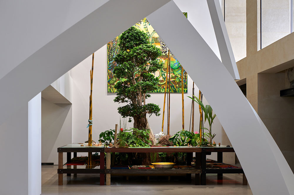 Что увидят сегодня посетители фонда? Первая выставка Exposition Generale («Основная выставка») —это как инстаграмный пост «Обо мне», рассказ о фонде и коллекции буквально от печки плюс показ последних трендов и мод в духе великого универмага. Это перемонтирование сорока лет выставочной памяти: почти шестьсот работ, больше сотни художников и четыре магистральные линии повествования. Machines d’architecture («Архитектурные машины») — временная архитектурная лаборатория с макетами и прототипами японца Дзюньи Исигами, утопическими городскими моделями конголезца ь, яркой геометрией боливийца Фредди Мамани, а также конструкциями нью-йоркского бюро Diller Scofidio + Renfro. Être nature («Быть природой») — рассказ о живых мирах и их сохранении: тут фотографии швейцарки Клаудии Андухар, фильмы француза Реймона Депардона, живопись коренной австралийки из племени кайадилт Салли Габори и маори Никaу Хиндин, работы MAHKU, коллектива бразильского племени хуни куин, и художников латиноамериканского региона Гран-Чако. Тут акцент на знании, что рождается в обществе и общине, и о природе как месте, где это знание и вообще память хранятся и считываются без перевода.