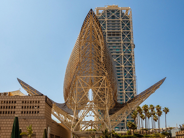 Придумать эффектную конструкцию мало, нужно ее реализовать. В 1992 году, во время работы над олимпийскими объектами в Барселоне, Гери и его команде нужно было придумать, как построить из узких стальных листов павильон в форме золотой рыбы. Используя двухмерные чертежи архитекторов, подрядчик шесть раз безуспешно пытался создать хотя бы макет. И тогда команда Гери обратились к технологии 3D, которая в начале 1990-х только начинала применяться в архитектуре, зато уже активно использовалась в авиамоделировании. Павильон был построен за шесть месяцев в рамках срока и бюджета.