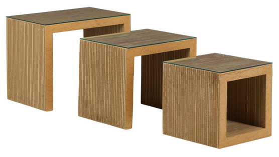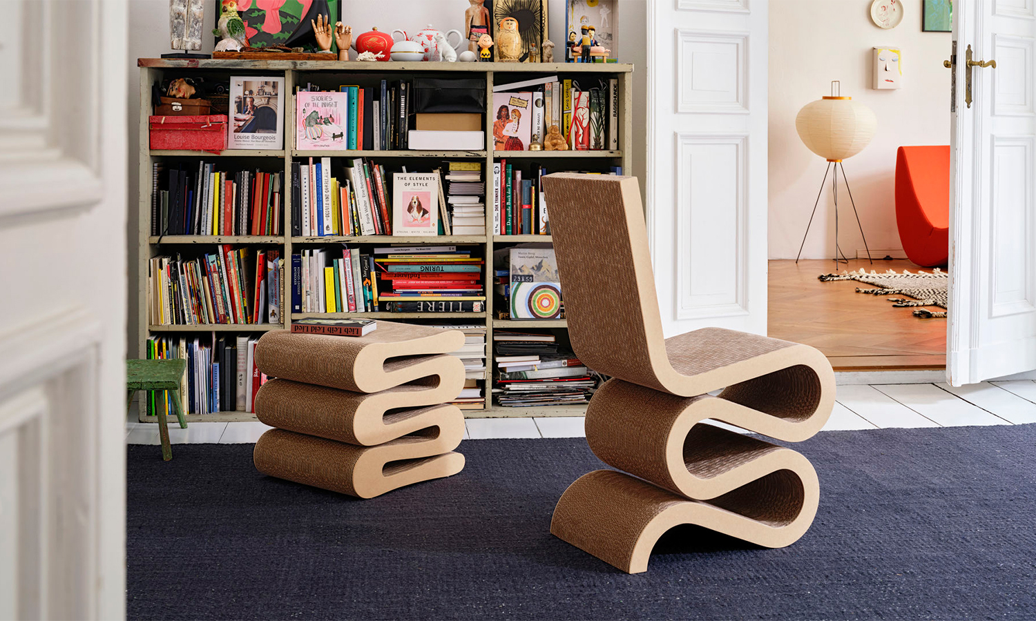 Архитектор решил, что если гофрокартон выдерживает холодильник, то выдержит и человека, — и начал эксперименты с мебелью из картонной упаковки. Он склеивал слои гофрокартона, вырезал форму и шлифовал поверхность, иногда покрывая мебель лаком, — получались недорогие и парадоксальные предметы с необработанными кромками, которые показывали дешевый обыденный материал с новой стороны — художественной и функциональной.