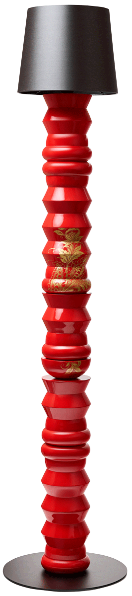 Дебют только появившегося бренда светильников «Люмарх» на ARTDOM 2026 привлек к себе большое внимание. Залог такого успеха в трех факторах. Во-первых, на выставке были представлены сразу одиннадцать объектов, которые позволили составить общее впечатление о концепции и стилистике новичков — они решили эпатировать и выбрали в качестве основного материала металл: из него сделаны даже плафоны и рассеивающие свет элементы. Во-вторых, для разработки торшеров, бра и настольных ламп были приглашены известные российские современные художники, дизайнеры и фирмы. Например, на металлическую ширму, которая позиционируется как источник мягкого света, перенесены элементы с картины Миши Никатина Sakura and Dots, а торшер по эскизам Никиты Горшкова похож на маяк. В списке авторов также есть Василий Клюкин, креативное агентство Working Knowledge и фэшн-бренд ÖMANKÖ. В-третьих, за оформление стенда отвечало бюро RMMSH, специализирующееся на проектировании интерьеров модных бутиков. Они сделали ставку на неожиданную цветовую гамму — градиент, переходящий от гранатового к фисташковому оттенку, — и модульную систему, состоящую из кубиков, которые собираются в постаменты любой высоты.