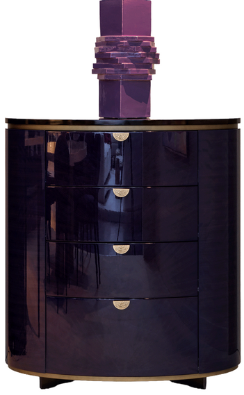 В этом году на выставке ARTDOM появилась новая секция — Collectible. Здесь были представлены арт-галереи, торгующие не только произведениями искусства, но и коллекционным дизайном. Дизайнер Полина Пидцан, имеющая за плечами пятнадцатилетний опыт проектирования и оформления жилых пространств, и московская галеристка Алина Пинская решили продемонстрировать, как могут сочетаться искусство и мебель. Специально для экспозиции изделия бренда Pidtsan Maison в стиле ар-деко были выпущены в новых отделках. Так, столешницу стола «Роде» украсило маркетри (техника создания мозаики из фигурных пластинок. — Прим. The Blueprint) из шпона кото, фасады комода «Франк» получили редкий шпон амаранта, имеющий фиолетовый оттенок, а стулья «Леле» обтянули бархатом Dedar похожего цвета. Скульптуры Игоря Шелковского, абстракции Евгения Музалевского и живопись Игоря Скалецкого гармонично дополнили общую картину, создав ощущение готового интерьера.