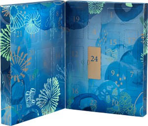 Если мы не едем к океану, океан едет к нам — в виде этого адвент-календаря. Французская марка Thalion включила в него 24 средства для ухода за кожей лица и тела с активными морскими ингредиентами — водорослями, морским кремнием и минералами, восстанавливающими кожу. Как и в прошлом году, средства поделены на четыре блока (то есть четыре недели): сначала добавляем коже сияния, затем подключаем средства, подтягивающие кожу, дальше — успокаивающий уход, а финальный отрезок декабря посвящаем глубокому увлажнению. Кстати, в каждом блоке есть по два полноразмерных продукта, так что набора хватит надолго.