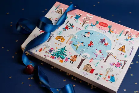 В новогоднем наборе — 20 шоколадных конфет и фигурок, спрятанных в окошках календаря. Их, кстати, специально не стали датировать — чтобы не считать дни до Нового года, а наслаждаться каждым. Дополнительный бонус — при заказе можно выбрать оформление календаря в розовых или зеленых тонах.