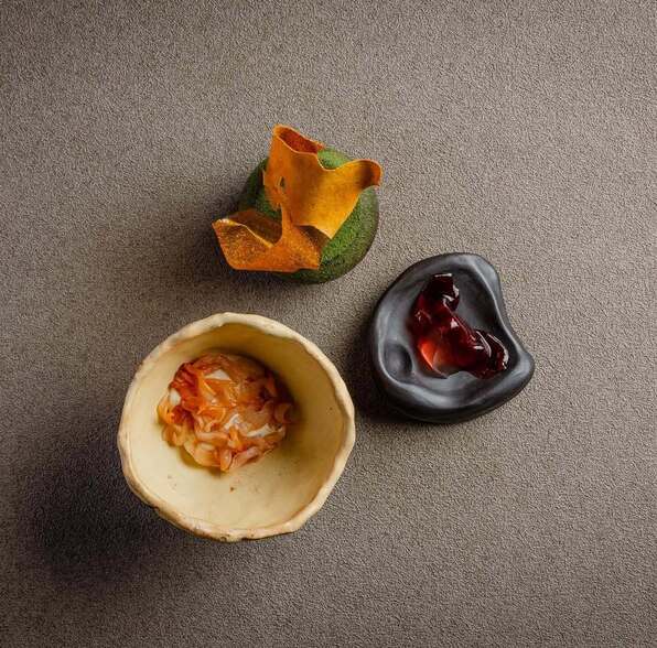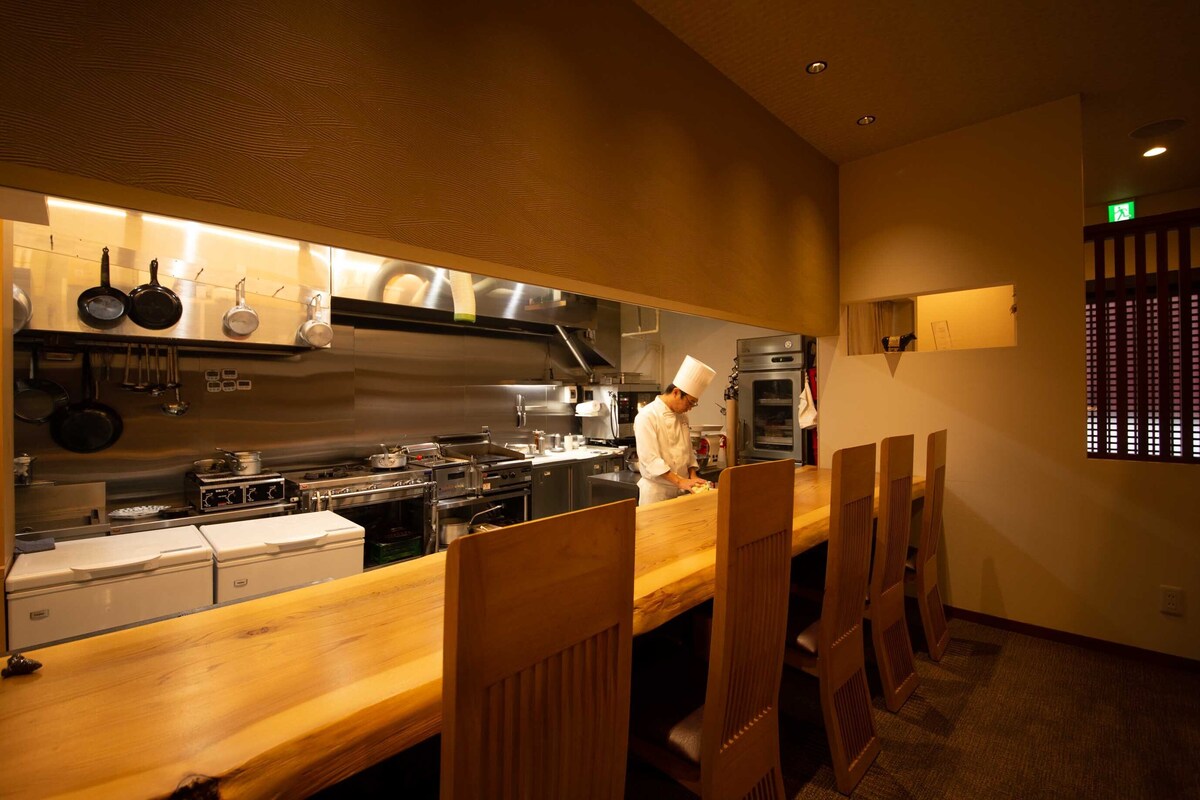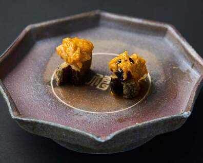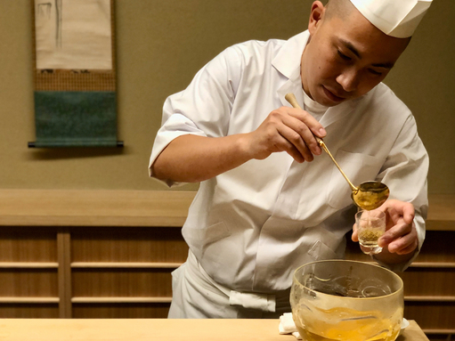 Французский ресторан японского шефа Хираясу Кавате показывает, как выглядит классика nouvelle cuisine в руках японского повара с отличным образованием: Кавате родом из поварской семьи, работал и в Японии, и во Франции, и в 2009 году открыл собственный ресторан. Кавате экологически сознательный шеф, поэтому в меню совсем немного мяса, рыбы и молочных продуктов, зато множество овощей, в том числе крайне редких вроде луковиц лилий или корней аралии сердцевидной. Все они родом из Японии, как и абсолютно все продукты, которые используют в ресторане, а также вся посуда. Можно заказать чисто овощной сет, но лучше взять мясной, который включает самое известное блюдо Кавате — карпаччо из вагю, но не бычка, как обычно готовят, а из мяса 13-летней молочной коровы.