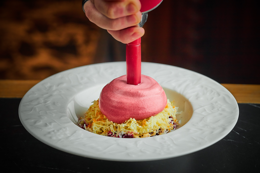 На вопрос «как не переесть за новогодним столом?» любой шеф вам быстро ответит: «Нужно просто есть поменьше». При этом, если судить по новогодним спешлам в ресторанах, даже самые традиционные блюда все чаще предстают в обновленном формате: с меньшими порциями, облегченными соусами и пересобранным составом. «Мы привыкли, что новогодний стол должен ломиться, но в этом нет необходимости, — говорит Владимир Чистяков, бренд-шеф ресторанов Alba и Bisou в Дубае, а также “Культура встречи” в Москве. — С другой стороны, у каждого свой режим питания и свои ограничения, это личная история, и нагружать ею людей, с которыми вы встречаете Новый год, точно не стоит». И все-таки убить двух зайцев — то есть приготовить менее калорийные, чем обычно, блюда и порадовать гостей — вполне реально.
