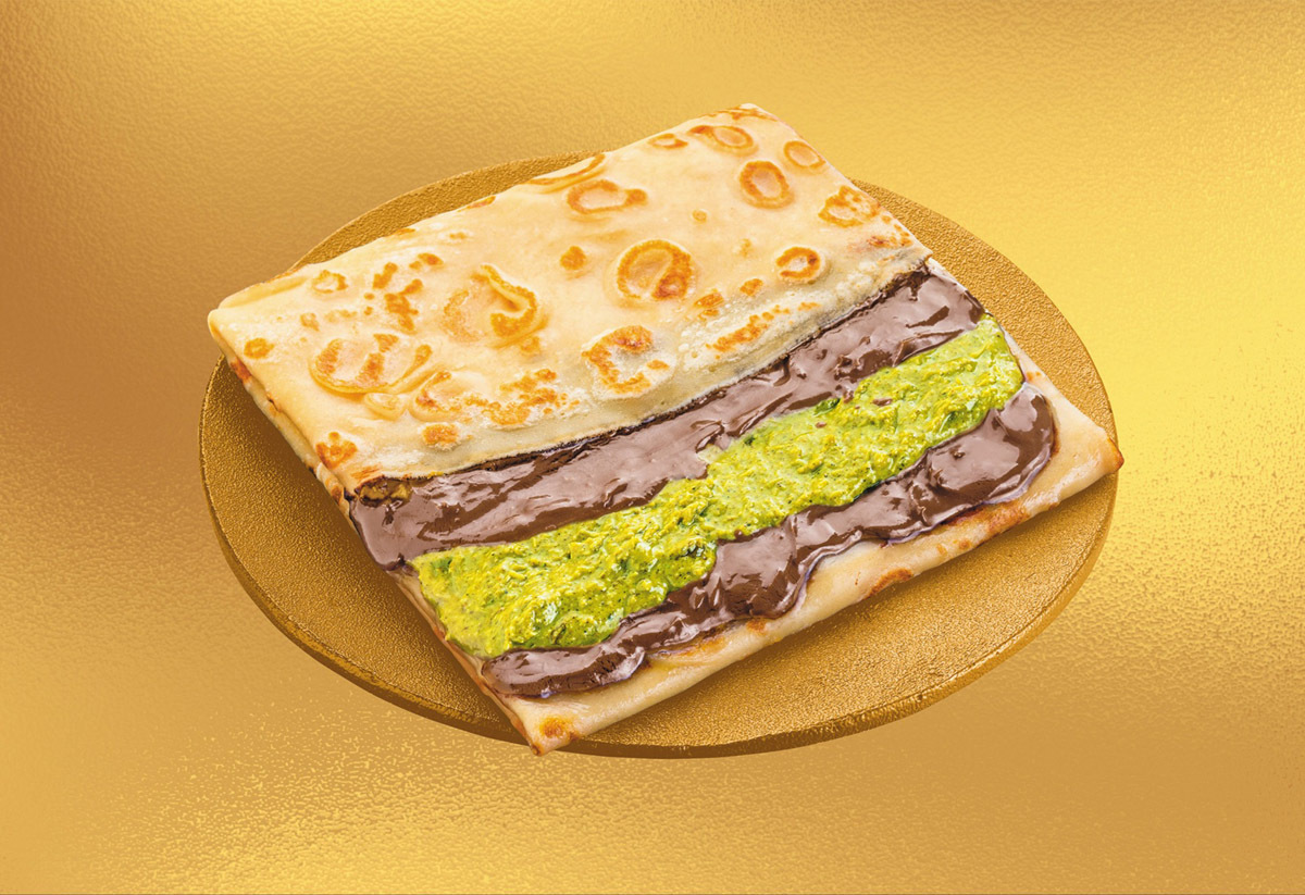 Эти блины притворяются медовиком, но еще в меню можно найти блины «Дубайский шоколад», которые очень похожи на нашумевший десерт.