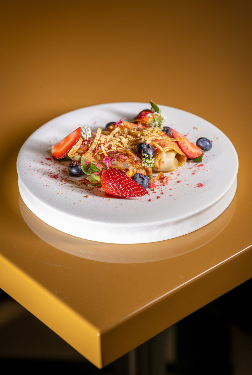 Не любите приторную сладость? В Soho Dolce готовят блины с легкой цитрусовой кислинкой — с апельсиновым парфе и соусом из манго.